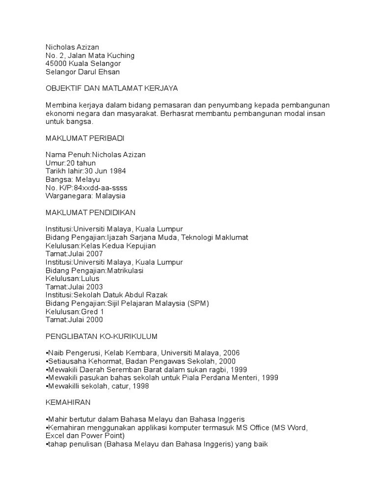 Membaca Kembali Resume Yang Telah Dibuat. Sebelum anda memohon kerja di syarikat yang menawarkan jawatan kosong sebaiknya anda. Kriteria bahasa adalah lebih mudah dibaca dalam bentuk jadual.
